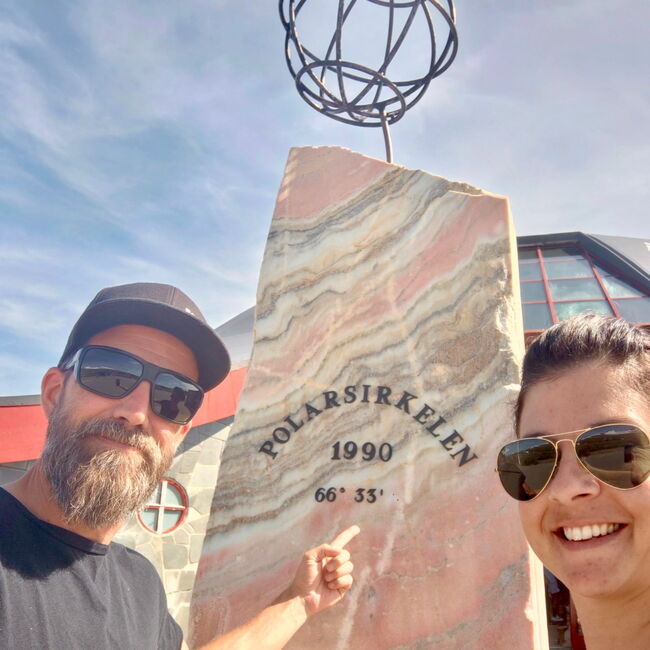 Geschafft - heute haben wir den PolarCHreis überquert und sind in unserer neuen Heimat angekommen.