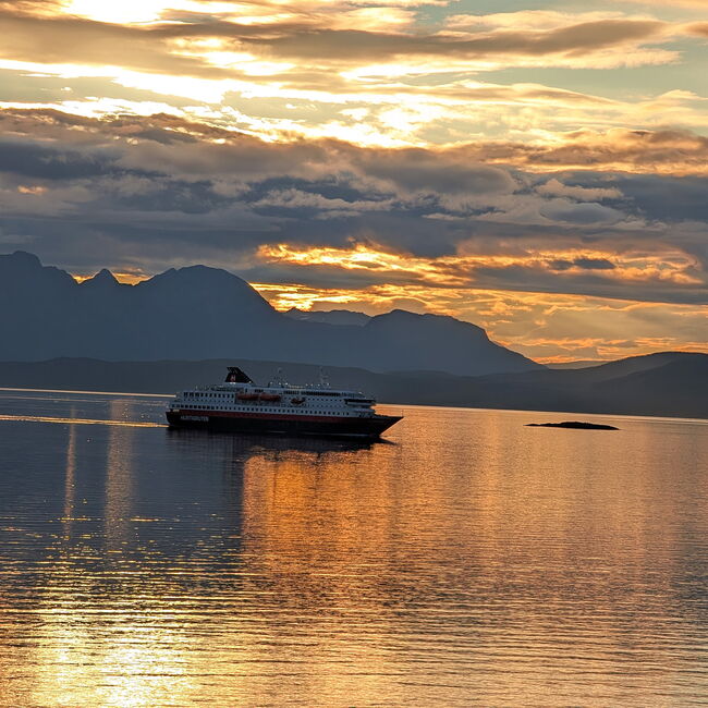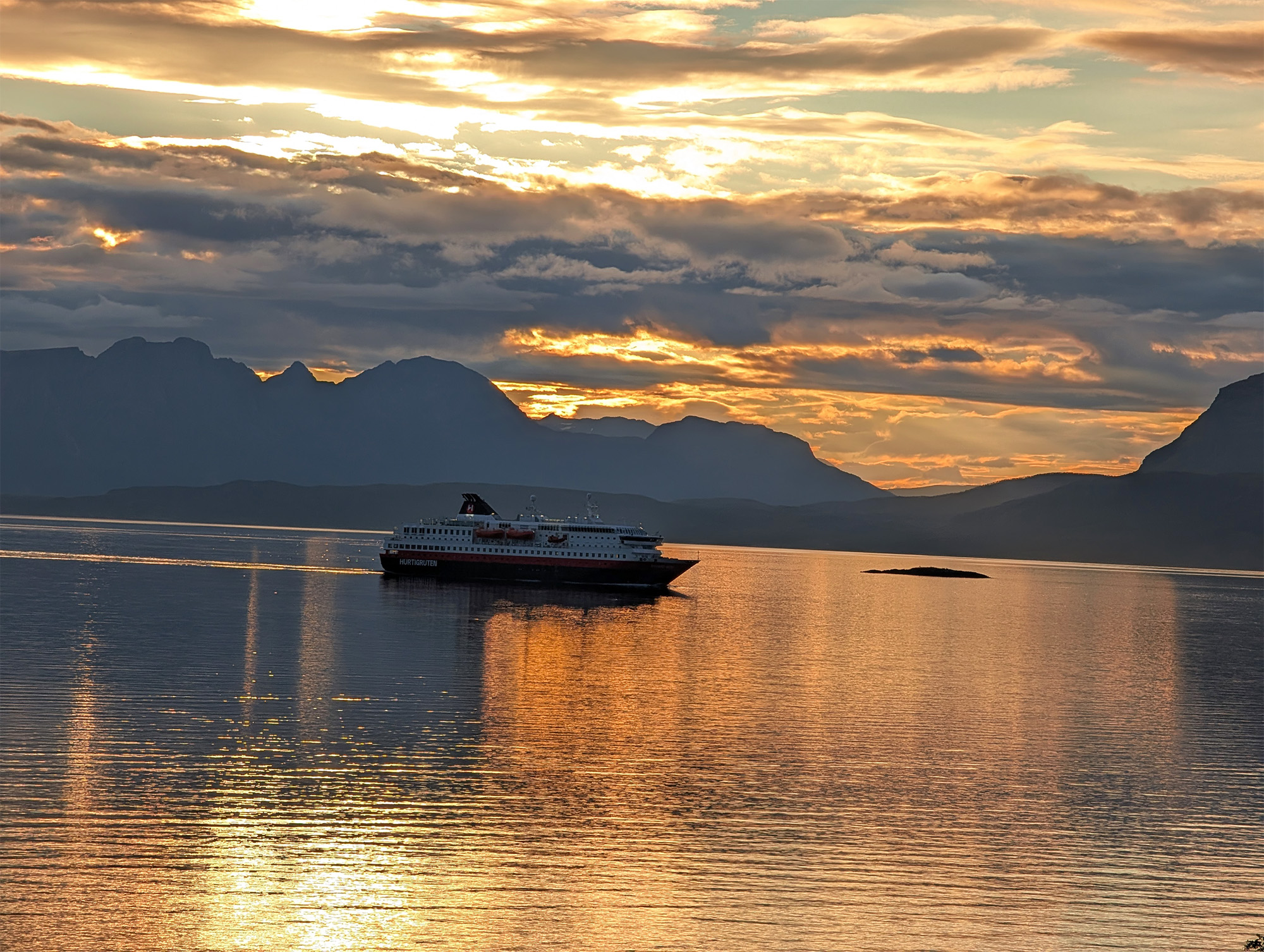 Unser Leben hat sich nicht gross verändert, Marc arbeitet ganz normal im Homeoffice (hier einfach mit Blick auf das Meer) und ich konnte inzwischen auch einen ersten Job finden. Ich arbeite nun als Guide bei Explore Harstad und darf Bustouren begleiten, auf welchen Fahrgäste der Hurtigruten die Kultur, Geschichte und die Landschaft des Nordens gezeigt wird. Die Tour dauert jeweils ca. viereinhalb Stunden, danach fahren ich und der Chauffeur mit dem Car wieder anderthalb Stunden zurück nach Harstad. Für mich gefühlt ein kurzer Arbeitstag, hier in Norwegen aber ganz normal 😉